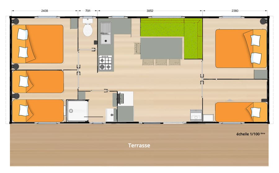 - Mobile homes 2 à 4 chambres, 4 à 8 personnes