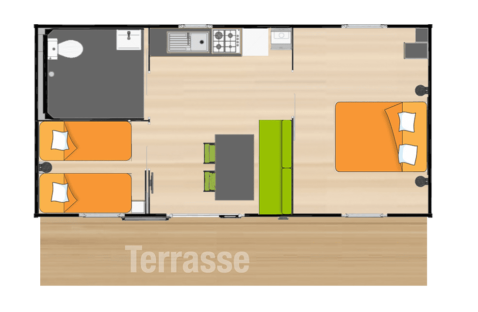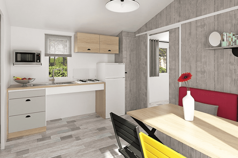 Votre mobil-home ou votre cottage sont le point de ralliement de votre tribu sur le camping pendant les vacances en famille ou entre amis : certains partent après le petit-déjeuner pour leurs activités, profiter des piscines, de la plage, mais tous reviennent pour déjeuner, le temps d'une douche, d'une sieste. Votre bungalow se doit d'être très fonctionnel avec un espace privilégié pour chacun.