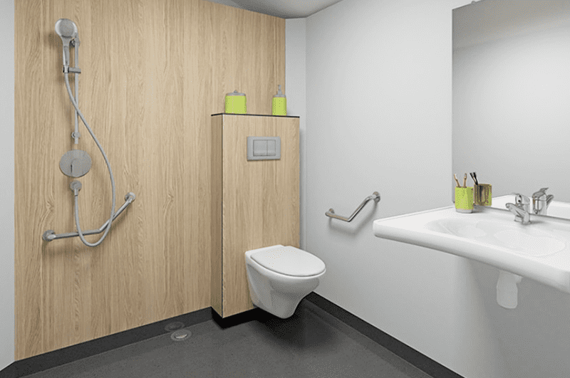 - Adapté aux personnes en situation de handicap ou à mobilité réduite (larges espaces de vie, douche extra large avec porte coulissante d'un mètre,