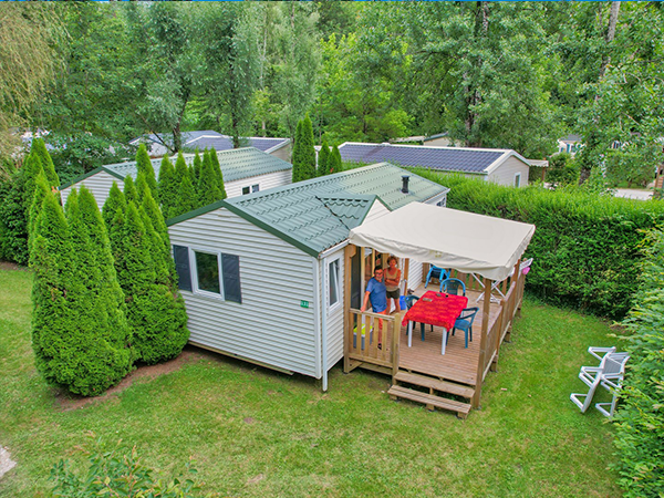 Idéalement situé pour les vacanciers en recherche de calme, repos et sérénité. Ce mobil-home ravira les amoureux de la nature par sa position au cœur de la forêt de chênes et de bouleaux, sur les hauteurs un peu à l'écart de la vie animée du camping.